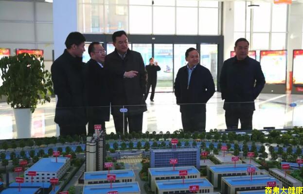 在森弗健康養(yǎng)生產(chǎn)業(yè)園沙盤前,陜西森弗集團(tuán)董事長(zhǎng)金新康向各位領(lǐng)導(dǎo)介紹了產(chǎn)業(yè)園建設(shè)、規(guī)劃情況。
